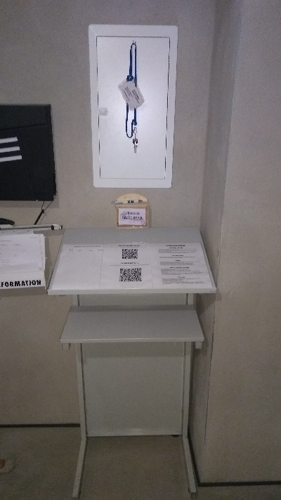 - Ausleihe beginnen: Die Ausleihstation ist in den neuen Räumen neben dem Briefkasten vor dem Serverraum. Dort auf der Liste unterschreiben und den Schlüssel mitnehmen.