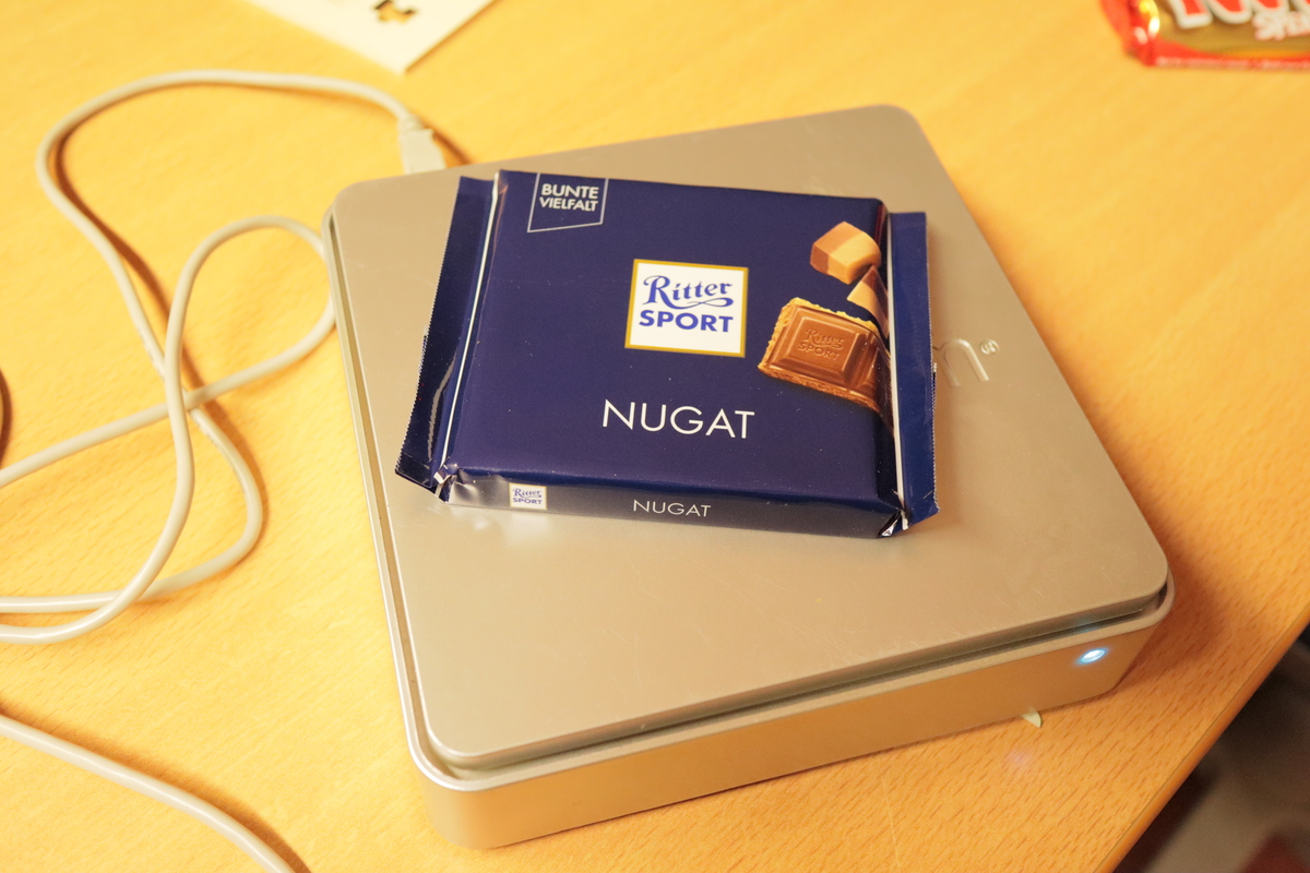 Leer ~/usbscale/usb-scale-reader/example$ sudo ./usbscale /dev/hidraw0 0.00 g Ritter Sport Nugat ~/usbscale/usb-scale-reader/example$ sudo ./usbscale /dev/hidraw0 99.22 g Twix Spekulatius ~/usbscale/usb-scale-reader/example$ sudo ./usbscale /dev/hidraw0 45.36 g
